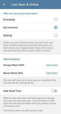 У налаштуваннях приватності Telegram можна подивитись: