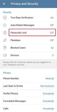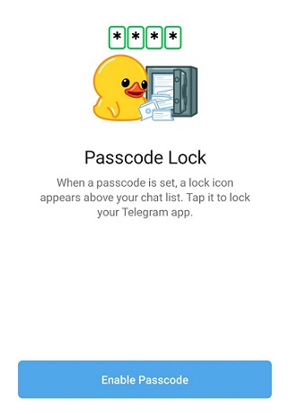 Завдяки встановленню власного PIN-коду в налаштуваннях, після виходу з Telegram або через певний час бездіяльності застосунок блокується. Щоб отримати доступ до нього, потрібно ввести код.