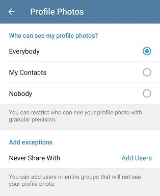 Щоб убезпечити профіль у Telegram, тут можна налаштувати фото:
