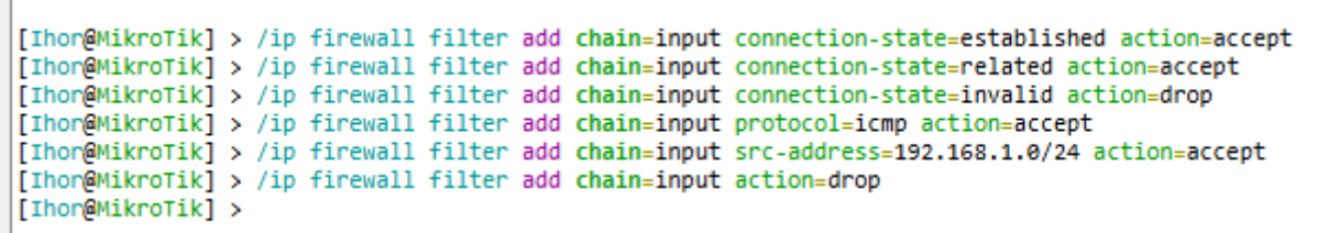add chain=input src-address=192.168.0.0/24 action=accept